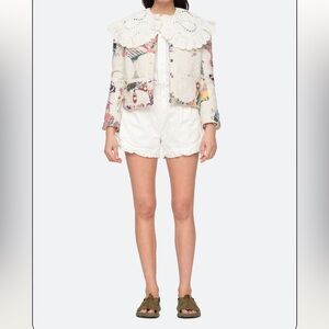 Sea New York Doris Paperbag White Denim Ruffle Shorts Size 0