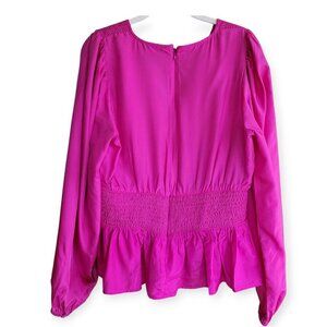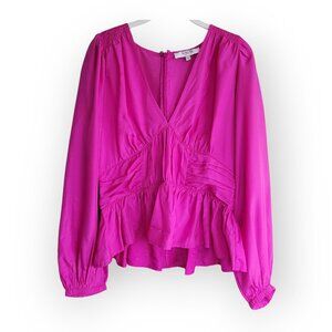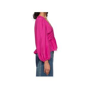 Sea New York Fabiola Silk Habotai Blouse Ruched Smocked Detailing Magenta 10