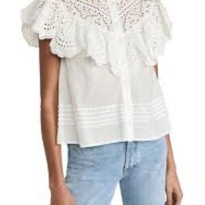 Charming details like eyelet, ruffles, and fluttery sleeves add texture and statement-making romance to this cotton button down from Sea.