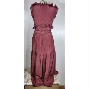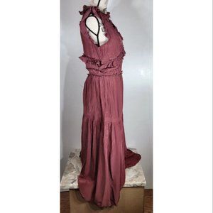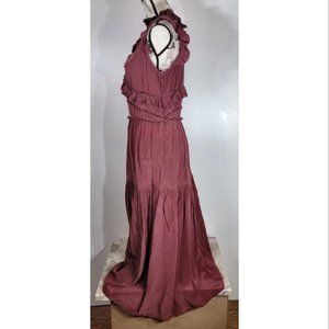 Sea New York Ruffled V-Neck Silk Port Maxi Dress Size 10, NWOT