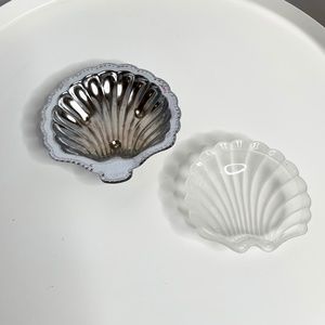 Sea Shell Silver Dish with Glass Insert. Glass is separate. Made in England. Would be cute as an ashtray. Good Condition, no chips in glass.