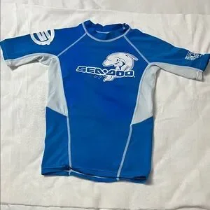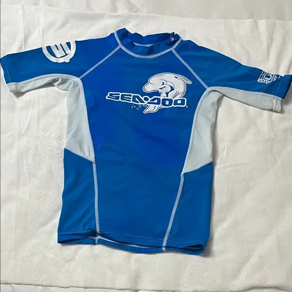 Keep your child protected and stylish with the Sea-Doo Kids Blue Rashguard. Perfect for sunny days at the beach.