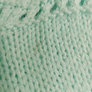 Hand knit seafoam green cardigan. In good pre-owned condition.