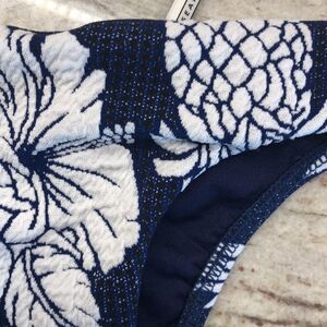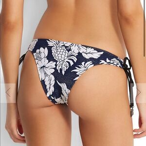 Seafolly Australia Royal Horizon Brazilian Loop Side Tie Bikini Bottom Floral Pineapple Navy/White