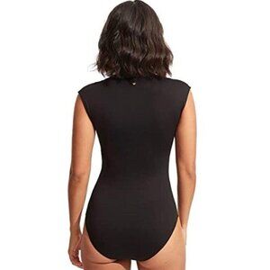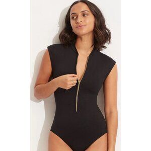 Seafolly Collective Zip Front Surfsuit One Piece Cap Sleeve Women’s Size US 10