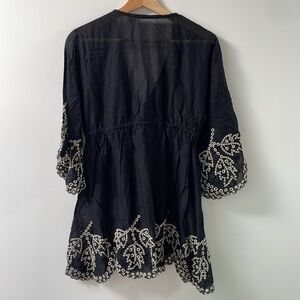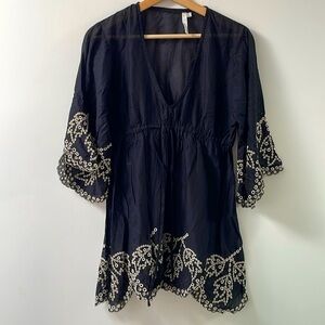 Seafolly swim beach coverup black elastic waist embroidery sleeves and trim sz M