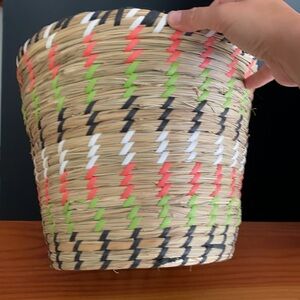Seagrass basket / planter with multicolor detail