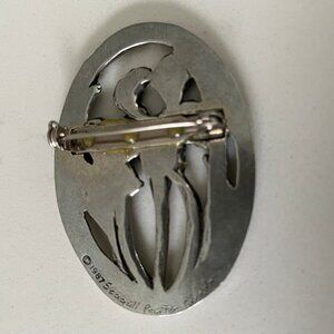 Seagull Canada Vintage Pewter Metal Floral Motif Oval Brooch