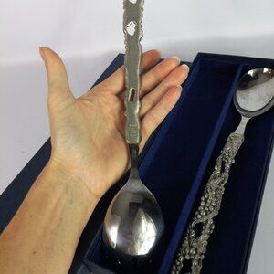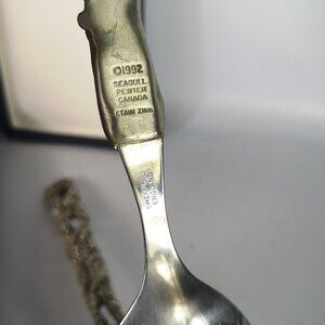 Seagull Pewter Canada Serving Set Fork and Spoon Vintage 1992 Grapevine Pattern