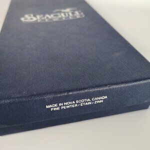 Seagull Pewter Canada Serving Set Fork and Spoon Vintage 1992 in the Grapevine pattern. This two-piece set includes a serving spoon and serving fork, both crafted from pewter and stainless steel with a beautiful Grapevine design. The handles feature a grape motif, adding a touch of elegance to any occasion. Hand wash only to maintain the glossy and matte finish of these exquisite pieces. Perfect for adults looking to add a unique Canadian touch to their dining experience. Made in Nova Scotia.