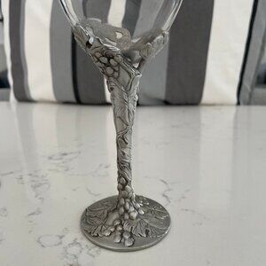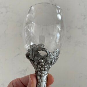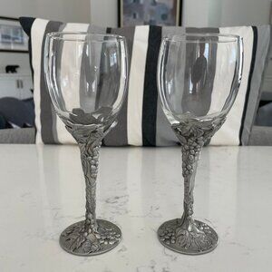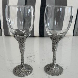 Seagull Pewter Canada Vintage Pair of Fine Pewter Wine Glasses in Grape & Grape Leaf Design NWOT