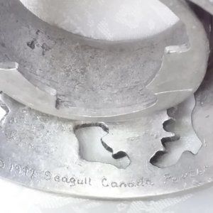 A beautiful centerpiece candle holder with Christmas images – Christmas trees and snowmen. It is nicely detailed done, will bring a great Christmas spirit to your home! The candle holder signed 1997 Seagull Pewter Canada. Pay attention I have Seagull pewter candle snuffer as well!