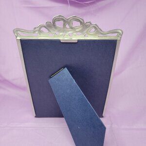 Looking for a wedding gift or a Christmas gift for the newly engaged couple? This lovely Seagull Pewter photo frame fits the bill. According to Seagull Pewter, this is their "most popular wedding frame, the oval opening is decorated with traditional symbols including bells , bows and roses". Holds a 8x10 photo. It is in like new condition, ready to be gifted or perhaps hold your own wedding photo.