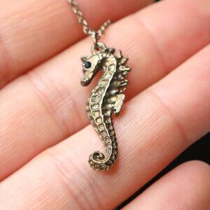 Seahorse Brass Tone Pendant Necklace Marine Nautical Retro Jewel Gold Metal
