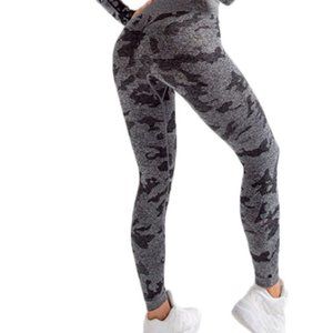 Camo design seamless yoga leggings. High rise, tummy control, squat proof. Moisture wicking fabric 87% Nylon 13% Spandex