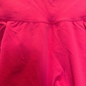 Seamless pink leggings with a ribbed high waistband and scrunch back detail. Flattering, supportive fit with smooth finish and contouring seams. Good condition wiht some pulling, as seen in photo and reflecting in price.