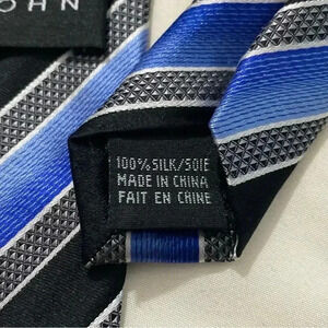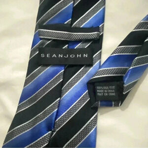 Sean John blue black white striped men 100% silk preppy formal necktie.