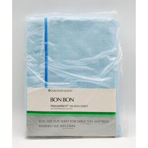 Sears Bon Bon Perma Prest Muslin Full Size Flat Sheet Light Blue