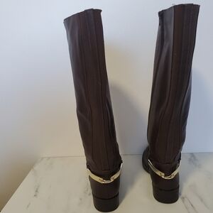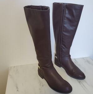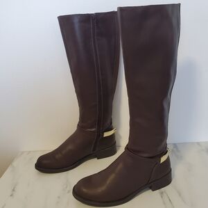 Sears Connor Vegan leather Brown Riding Boots with Zipper and Gold Buckle