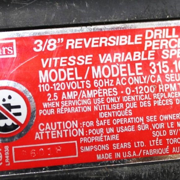 Sears Craftsman DRILL Model 31510514 Double Insulated 3/8" Reversible Drill