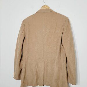 Sears Mens Store Tan Two Button Blazer Sport Coat Jacket Pockets Gold Buttons Lined