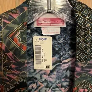 Vibrant jacket with geometric patterns. Features a mix of colors for a bold look. Perfect for adding style to any outfit. -AI