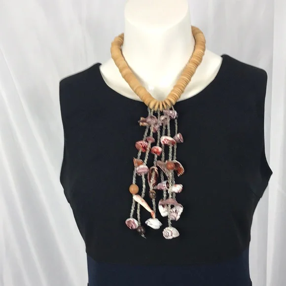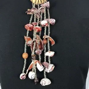 Soft wooden necklace with dangle seashells Different seashells and colours