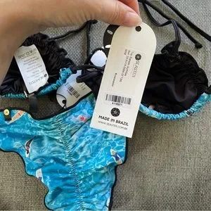Never worn size M but can fit S as well cause it’s very showy. Made in Brazil. Great quality