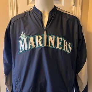 Seattle Mariners Officially Licensed Majestic MLB pullover windbreaker size large in excellent like new condition. These fit oversized to allow for layering for those chilly evening games! Measures approx 29” pit to pit and 27.5” top to bottom see pics for reference. **Hat sold separately**