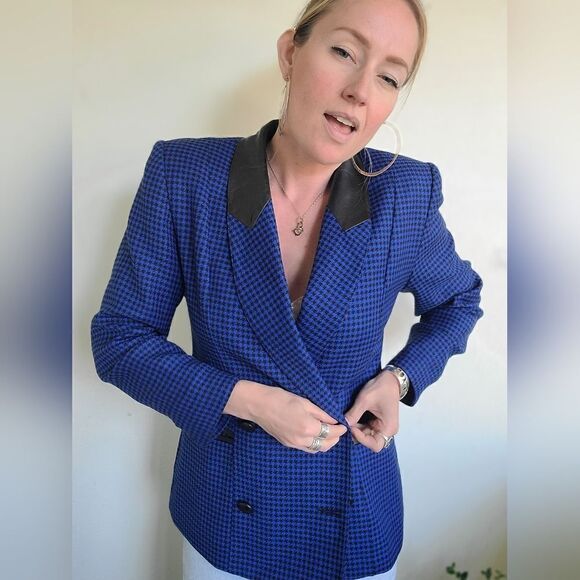 Sebastian Wool + Leather Vintage Houndstooth Blazer S-M