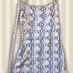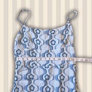 Flirty blue + white floral print with a wavy, 70s-inspired pattern and thin straps. Super lightweight, easy to dress up or throw over a bikini for a vacay vibe.