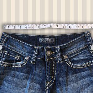 Secondhand Silver Denim longer shorts Size XS (Waist: 24”)