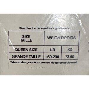 Queen size fits weight range 160-200 lbs (73-90 kg).