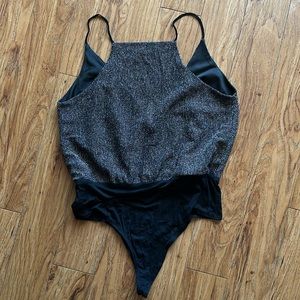nightlife, party, clubbing shimmery body suit, metal clasp crotch,