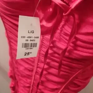 Never been worn. bought it awhile ago for a wedding that never happened and forgot about it. purchased along time ago. will sell with a bag protector. for $5 extra or best offer. I have taken a picture of the material. sorry my first post