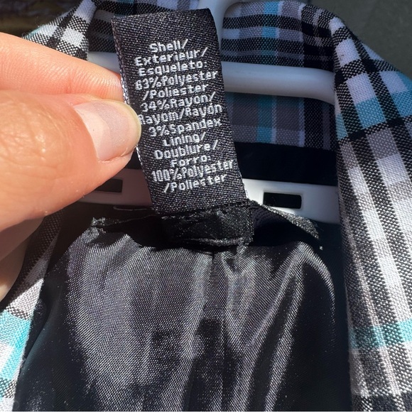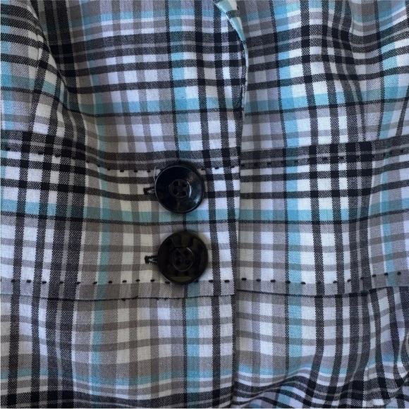 Seductions Womens S Y2K Vintage Blue White Plaid Form Fitting Button Blouse Top