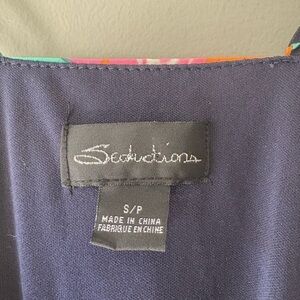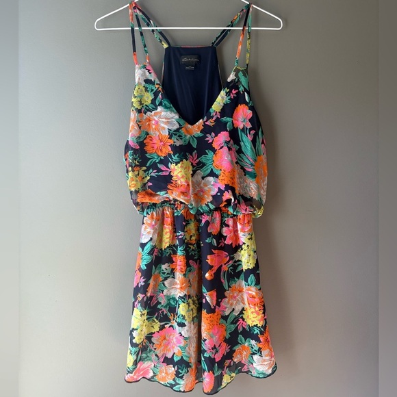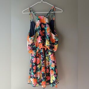 Seductions, size small, halter top, lined mini dress, bright floral pattern