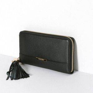 Leather Wallet In Black Leather And Gold-Tone Hardware With Leather Tassel & Gold Emblem