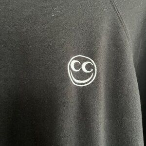 Soft black lightweight crewneck sweatshirt with a minimalist front and bold cream checkerboard graphic on the back. Relaxed, easy fit with raglan sleeves and a slightly longer body that’s great worn loose or half-tucked. Bought at The One Moto Show in Portland a couple years back and only worn a few times.
