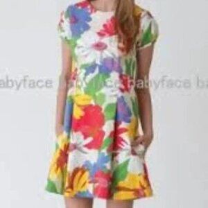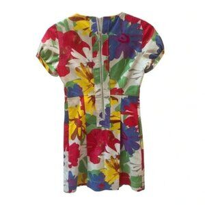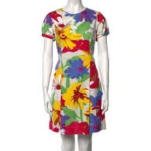 From See by Chloe, this is a beautiful dress that is perfect for the summer. This one is made from hearty cotton pique, with vibrant, multi-coloured floral prints. It has a fitted bust line, an empire waist, short sleeves, and wide box pleats. The dress zips up the rear, with a wide, exposed zipper. There are also pockets hidden in the side seams. Exquisitely crafted, you will love this special dress!