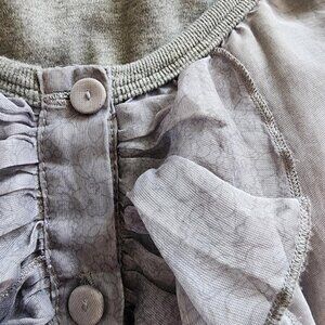 See by Chloé gray silk ruffle front short sleeve babydoll top with fitted inner tank in women's size US6