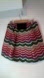 Chic mini skirt with bold wave design. Features red,purple, gold, and black accents