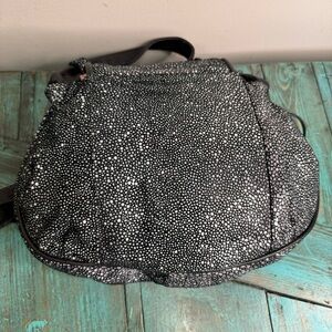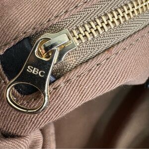 Pre owned. One tiny spot missing from the fabric in the front flap