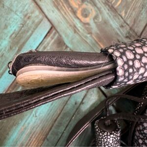 Speckled leather exterior with canvas lining