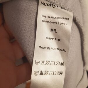 See by Chloe Light Grey (Dapple Grey) Ribbed 1/4 Zip-Up Sweater Poncho. Oversized size M/L, see pictures for measurements. 27" length, 50" width. Side opening are 21" length. Cotton & Polyester blend. Made in Portugal. Excellent condition. No stain, no rip. Non smoking house.