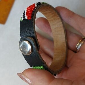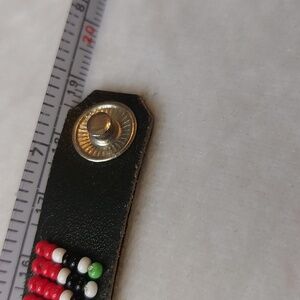 Seed Bead Snap Closure Black Red Green Bracelet 7.25"