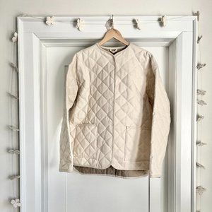 Description: The Milo is a flattering & spacious box shaped quilted coat with full length sleeves, long enough for a thick cuff. There are two front patch pockets, perfect for storing your essentials or keeping your hands warm. The coat closes with snap buttons going all the way up to the neck. Handmade in Courtenay, British Columbia.