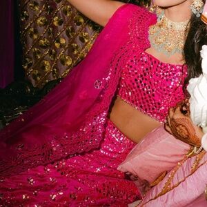 Brand new - worn once - seema gujral pink mirrored lengha. Size 42 length 43 1/2