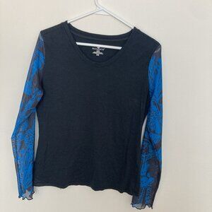 Segments Women’s Merino Wool Blend Shirt Mushroom Sleeves Black Blue Size M
