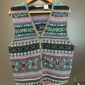 Segrets women’s M vintage knit sweater vest- amazing condition made in 1994 it’s perfect cottagecore and grandmacore. Very sought after vintage knit brand. Very detailed